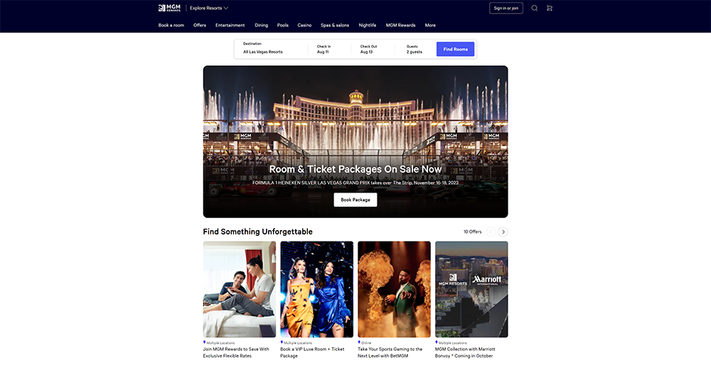 MGM Resorts presents a diverse portfolio of iconic properties in major entertainment destinations. With a focus on integrated resorts, travelers can easily book accommodations through MGM Resorts to access a blend of accommodations, dining, entertainment, and gaming, providing a comprehensive and exciting vacation experience.